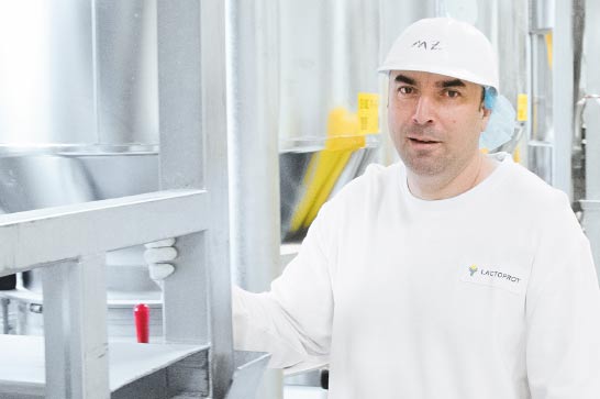 In diesem Werk haben wir uns auf die Veredelung von Kasein spezialisiert. Aus dem Protein, das wir in Leezen aus der Rohmilch gewinnen, machen wir hier sogenannte Kaseinate. Dazu nutzen wir eine hochmoderne Extrusionstechnologie. Das ist eine Verfahrenstechnik, mit deren Hilfe es uns gelingt, aus einem unlöslichen Säurekasein ein lösliches Kaseinat zu machen. Das alles klingt kompliziert, ist aber hochspannend.