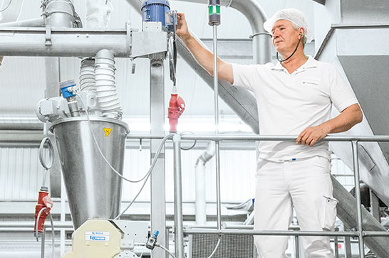 Insgesamt ist der Standort auf die Herstellung von jährlich rund 20.000 Tonnen abgepackter Trockenprodukte ausgelegt. Dafür stehen drei Mischanlagen für 1500, 3000 und 6000 Liter sowie fünf Abpacklinien zur Verfügung. 2018 nehmen wir außerdem eine Abpackanlage für Kleingebinde in Betrieb.